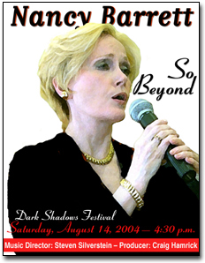 I spent part of the summer working with my friend Nancy Barrett, developing a new cabaret show with her. (I've produced several shows for Nancy since 1996.) She presented the show, titled So Beyond, at the 2004 Dark Shadows Festival in Tarrytown, NY.